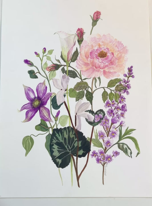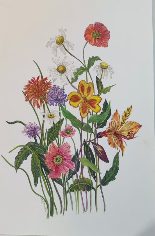 Original Watercolour Flower Painting. Floral Harmony.
